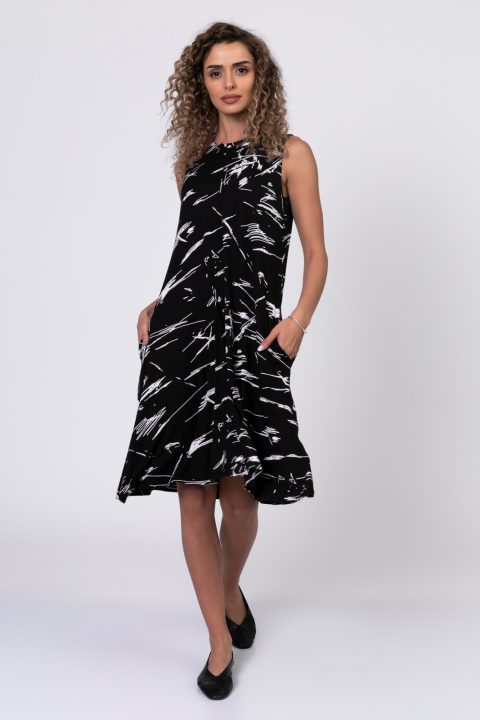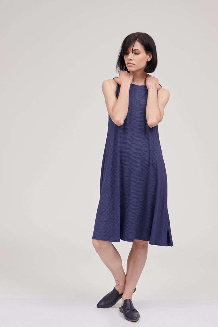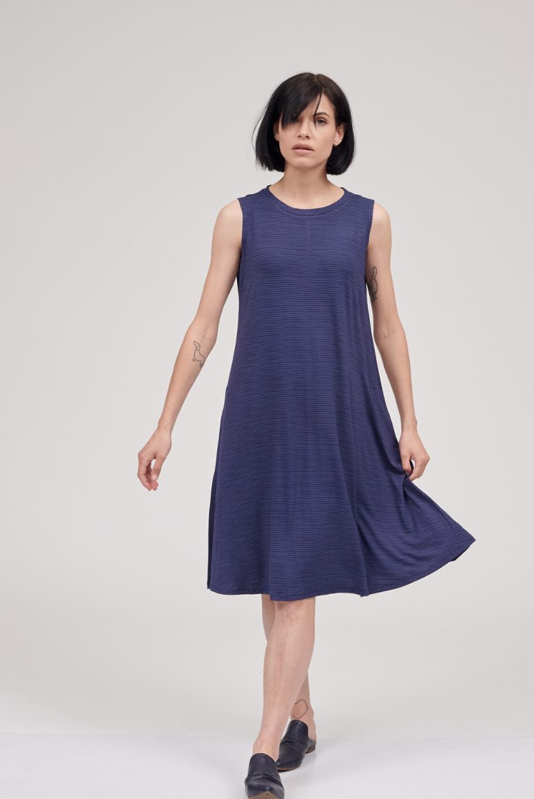 | שמלה מבד מבד סריג ויסקוזה עדין בגזרת A ללא שרוולים. מפתח הצוואר עגול וקו חיתוך הכתף מוקפד ומחמיא. יש גם כיסים נסתרים בצידי השמלה |