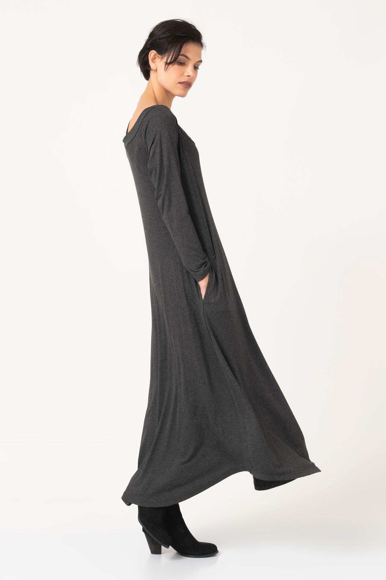 | שמלת לוטם היא פריט מרשים, שמלה שכיף ללבוש אותה ולהראות בה. גזרה מתרחבת באורך מקסי, היא מעוצבת מסריג ויסקוזה, מפתח צוואר אליפטי ומחמיא, עם שרוולים ארוכים . שמלה נינוחה וקלילה ללוק מנצח בפני עצמה או עם ג'קט קצר מעל. |