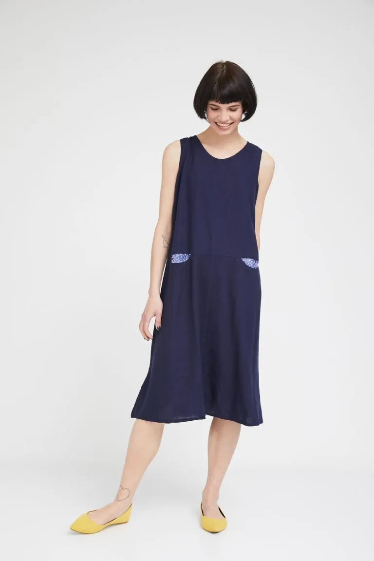 | שמלת אריג ללא שרוולים התפורה מבד פשתן וויסקוזה מקולקצית NATURAL . לשמלה שני כיסים בבחזית המשולבים בד וסקוזה. השמלה מושלמת לתקופת האביב והקיץ לעבודה, לאירוע וסתם להרגיש יפה. |