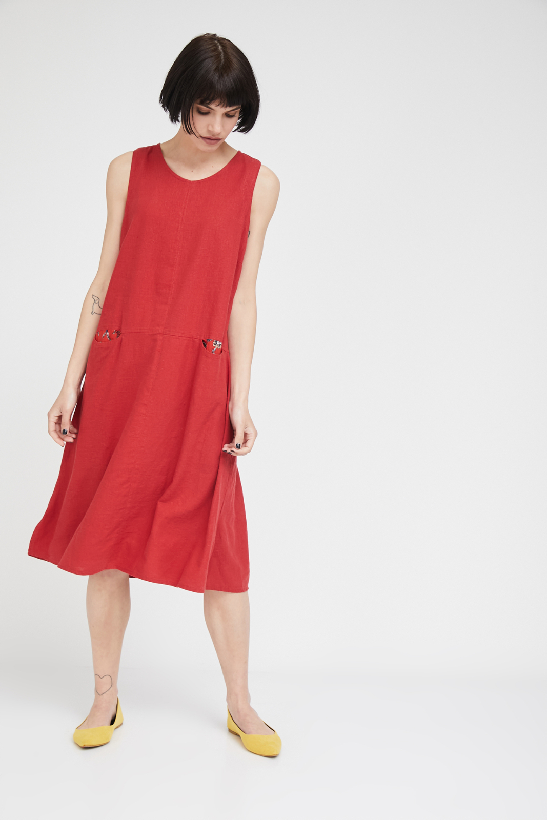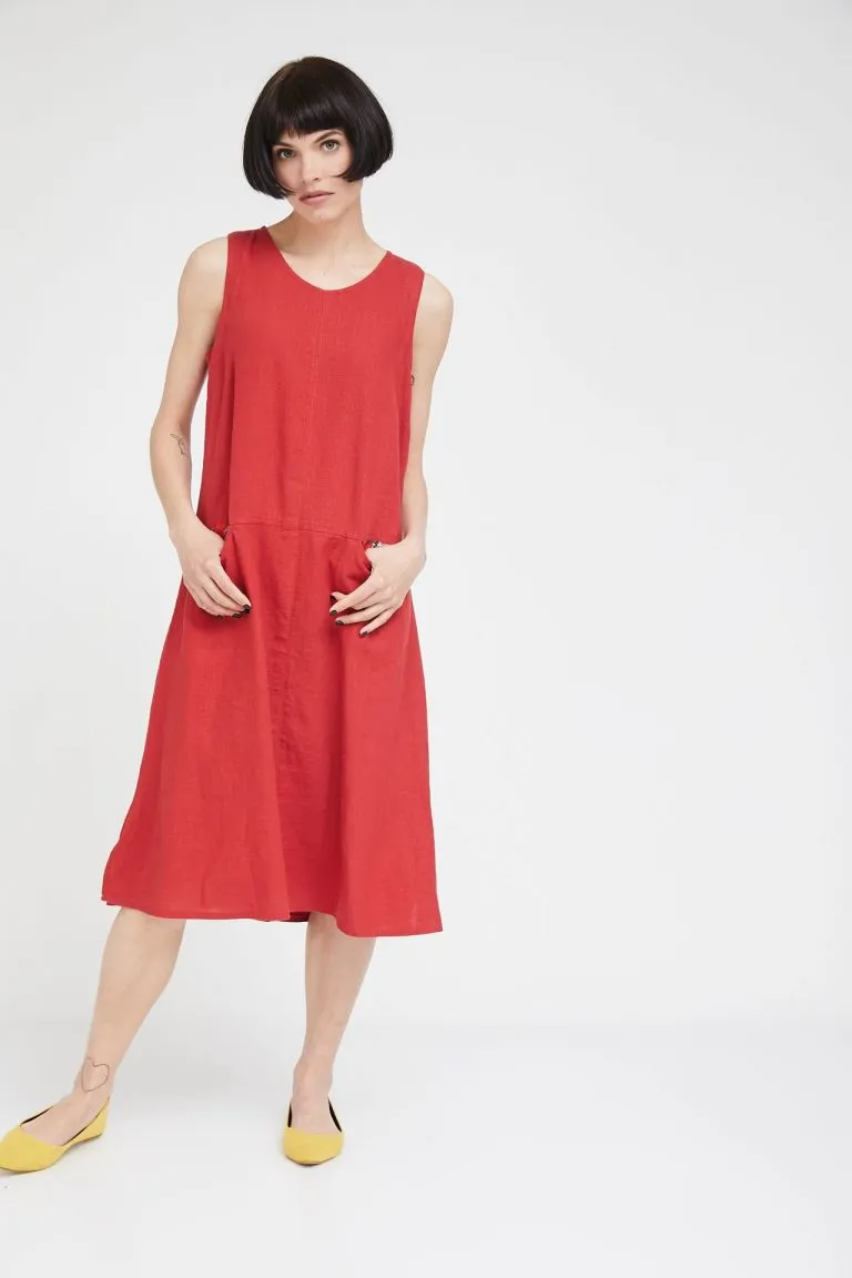 | שמלת אריג ללא שרוולים התפורה מבד פשתן וויסקוזה מקולקצית NATURAL . לשמלה שני כיסים בבחזית המשולבים בד וסקוזה. השמלה מושלמת לתקופת האביב והקיץ לעבודה, לאירוע וסתם להרגיש יפה. |