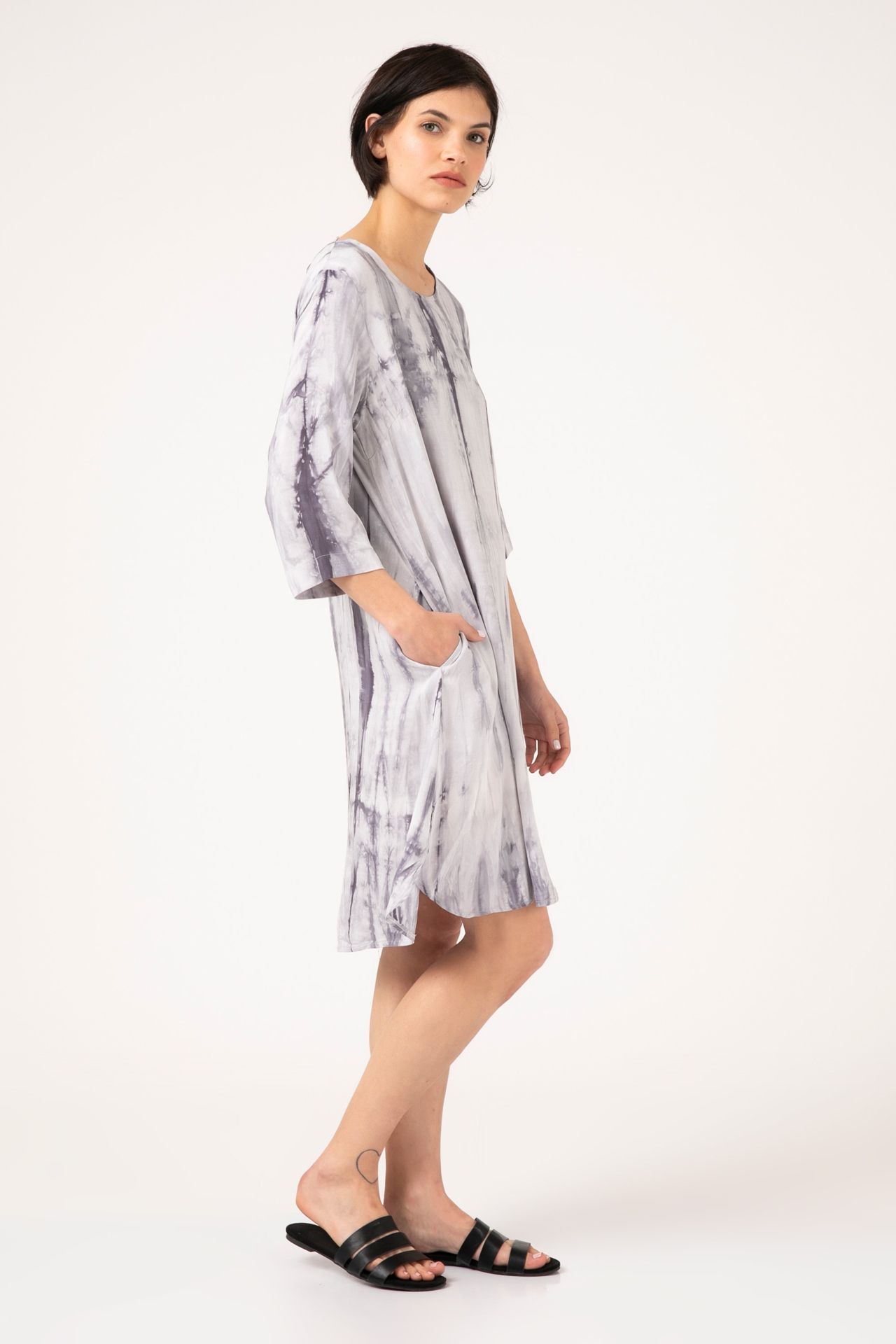 | שמלה קצרה מבד אריג קייצי. לשמלה פתח שחושף את הגב מעל לקו החזיה עם קשירה מעודנת. השרוולים באורך 3/4. | |