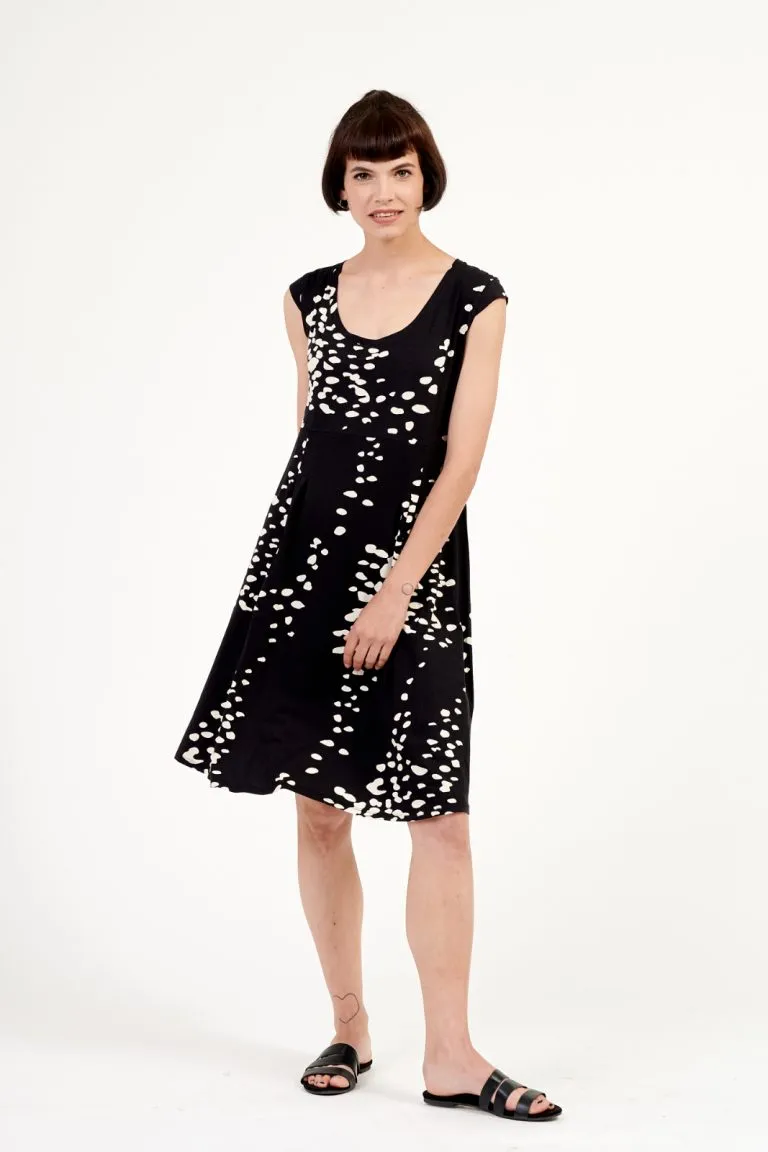| שמלה קלילה מסריג סמפוניה נהדר. השמלה מעוצבת בגיזרת A מחמיאה לגוף. כפלונים מעודנים בחזית, מפתח צוואר עגול, ללא שרוולים ועם כיסים בצדים |